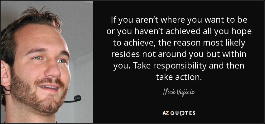 If you aren’t where you want to be or you haven’t achieved all you hope to achieve, the reason most likely resides not around you but within you. Take responsibility and then take action.