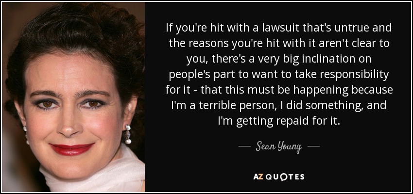 If you're hit with a lawsuit that's untrue and the reasons you're hit with it aren't clear to you, there's a very big inclination on people's part to want to take responsibility for it - that this must be happening because I'm a terrible person, I did something, and I'm getting repaid for it.