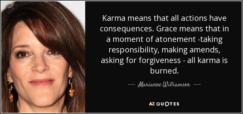 Karma means that all actions have consequences. Grace means that in a moment of atonement -taking responsibility, making amends, asking for forgiveness - all karma is burned.