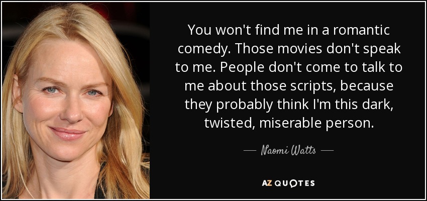 You won't find me in a romantic comedy. Those movies don't speak to me. People don't come to talk to me about those scripts, because they probably think I'm this dark, twisted, miserable person.