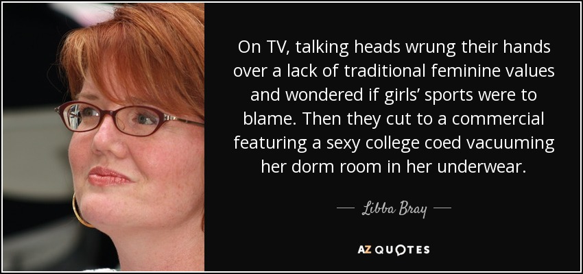 On TV, talking heads wrung their hands over a lack of traditional feminine values and wondered if girls’ sports were to blame. Then they cut to a commercial featuring a sexy college coed vacuuming her dorm room in her underwear.