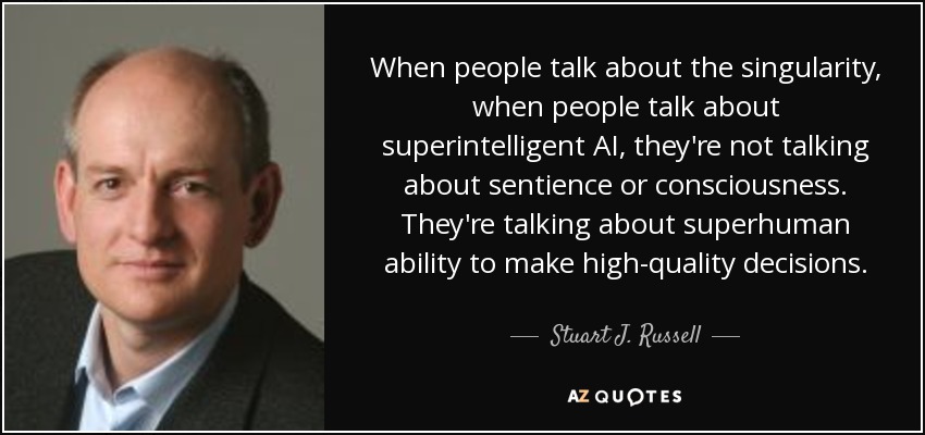 When people talk about the singularity, when people talk about superintelligent AI, they're not talking about sentience or consciousness. They're talking about superhuman ability to make high-quality decisions.