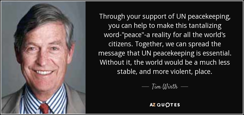 Through your support of UN peacekeeping, you can help to make this tantalizing word-"peace"-a reality for all the world's citizens. Together, we can spread the message that UN peacekeeping is essential. Without it, the world would be a much less stable, and more violent, place.