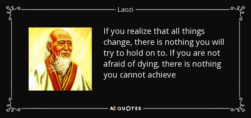 If you realize that all things change, there is nothing you will try to hold on to. If you are not afraid of dying, there is nothing you cannot achieve