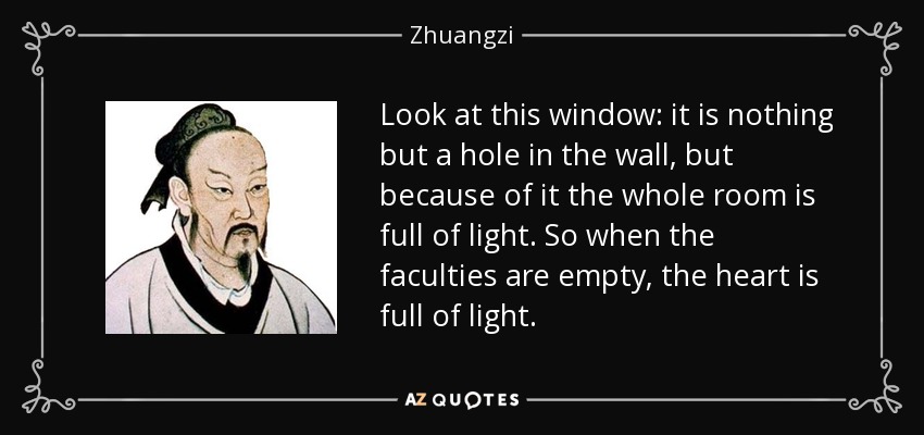 Look at this window: it is nothing but a hole in the wall, but because of it the whole room is full of light. So when the faculties are empty, the heart is full of light.