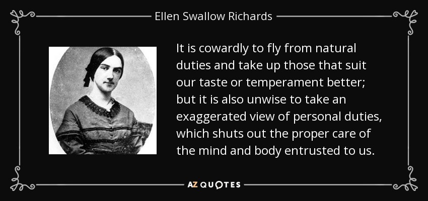 It is cowardly to fly from natural duties and take up those that suit our taste or temperament better; but it is also unwise to take an exaggerated view of personal duties, which shuts out the proper care of the mind and body entrusted to us.