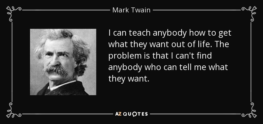 I can teach anybody how to get what they want out of life. The problem is that I can't find anybody who can tell me what they want.