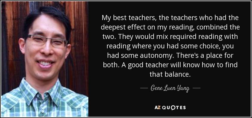 My best teachers, the teachers who had the deepest effect on my reading, combined the two. They would mix required reading with reading where you had some choice, you had some autonomy. There's a place for both. A good teacher will know how to find that balance.