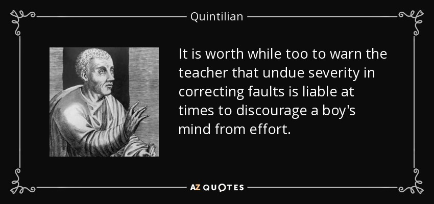 It is worth while too to warn the teacher that undue severity in correcting faults is liable at times to discourage a boy's mind from effort.