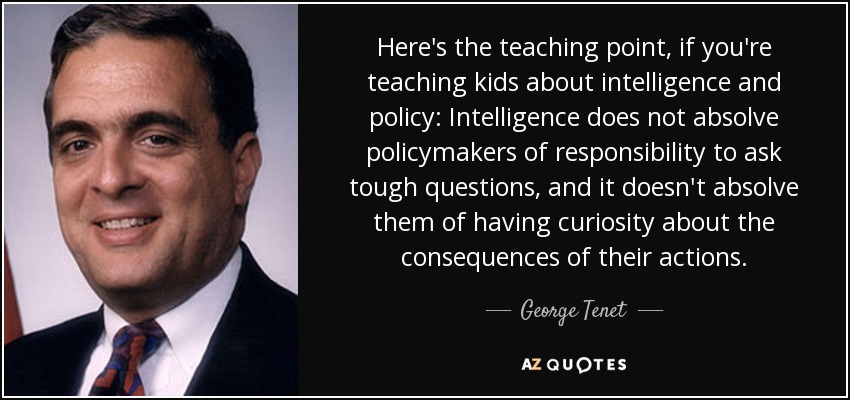 Here's the teaching point, if you're teaching kids about intelligence and policy: Intelligence does not absolve policymakers of responsibility to ask tough questions, and it doesn't absolve them of having curiosity about the consequences of their actions.