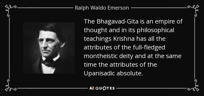 The Bhagavad-Gita is an empire of thought and in its philosophical teachings Krishna has all the attributes of the full-fledged montheistic deity and at the same time the attributes of the Upanisadic absolute.