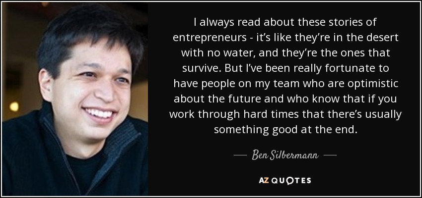 I always read about these stories of entrepreneurs - it’s like they’re in the desert with no water, and they’re the ones that survive. But I’ve been really fortunate to have people on my team who are optimistic about the future and who know that if you work through hard times that there’s usually something good at the end.