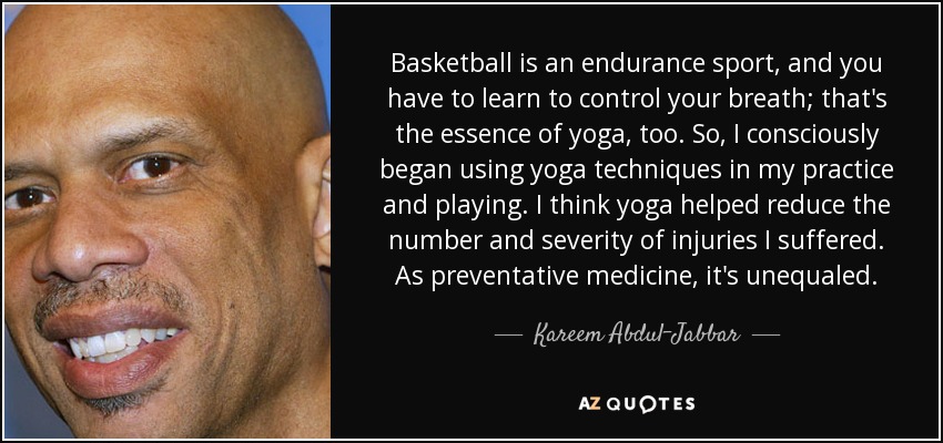 Basketball is an endurance sport, and you have to learn to control your breath; that's the essence of yoga, too. So, I consciously began using yoga techniques in my practice and playing. I think yoga helped reduce the number and severity of injuries I suffered. As preventative medicine, it's unequaled.