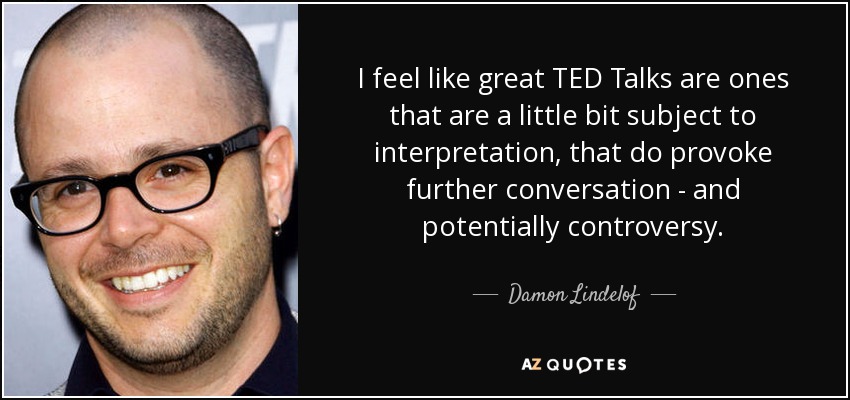 I feel like great TED Talks are ones that are a little bit subject to interpretation, that do provoke further conversation - and potentially controversy.