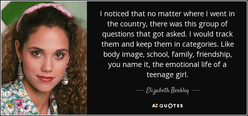 I noticed that no matter where I went in the country, there was this group of questions that got asked. I would track them and keep them in categories. Like body image, school, family, friendship, you name it, the emotional life of a teenage girl.