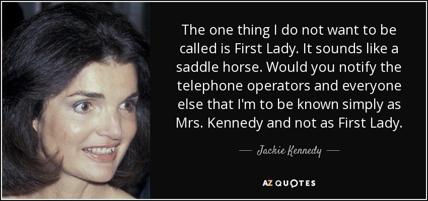 The one thing I do not want to be called is First Lady. It sounds like a saddle horse. Would you notify the telephone operators and everyone else that I'm to be known simply as Mrs. Kennedy and not as First Lady.