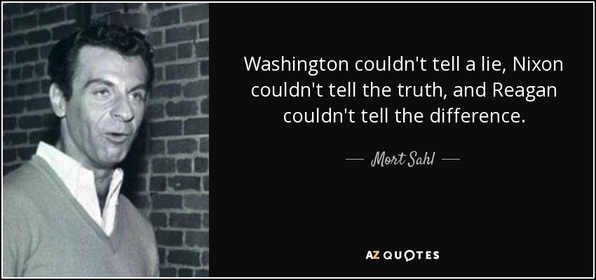 Washington couldn't tell a lie, Nixon couldn't tell the truth, and Reagan couldn't tell the difference.