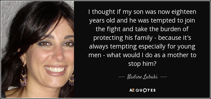 I thought if my son was now eighteen years old and he was tempted to join the fight and take the burden of protecting his family - because it's always tempting especially for young men - what would I do as a mother to stop him?