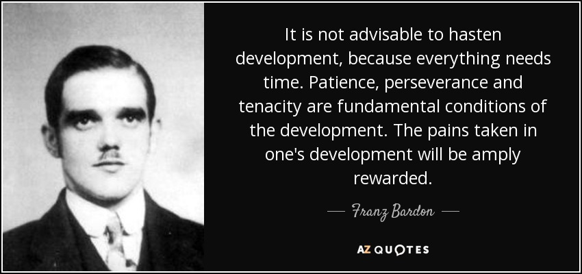 It is not advisable to hasten development, because everything needs time. Patience, perseverance and tenacity are fundamental conditions of the development. The pains taken in one's development will be amply rewarded.