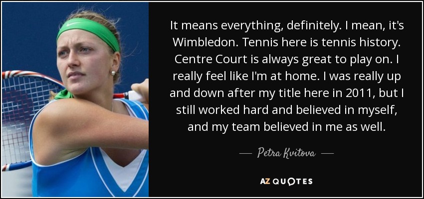 It means everything, definitely. I mean, it's Wimbledon. Tennis here is tennis history. Centre Court is always great to play on. I really feel like I'm at home. I was really up and down after my title here in 2011, but I still worked hard and believed in myself, and my team believed in me as well.