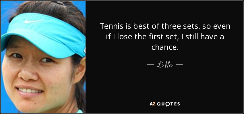Tennis is best of three sets, so even if I lose the first set, I still have a chance.