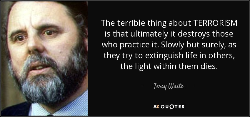 The terrible thing about TERRORISM is that ultimately it destroys those who practice it. Slowly but surely, as they try to extinguish life in others, the light within them dies.