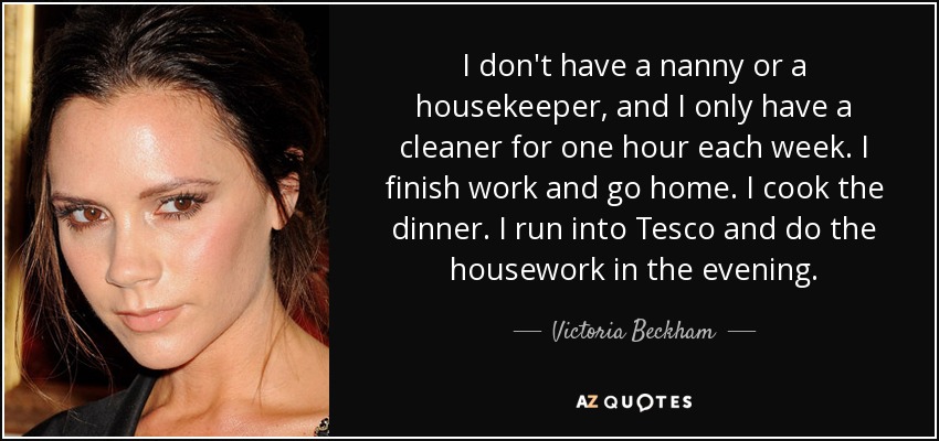 I don't have a nanny or a housekeeper, and I only have a cleaner for one hour each week. I finish work and go home. I cook the dinner. I run into Tesco and do the housework in the evening.