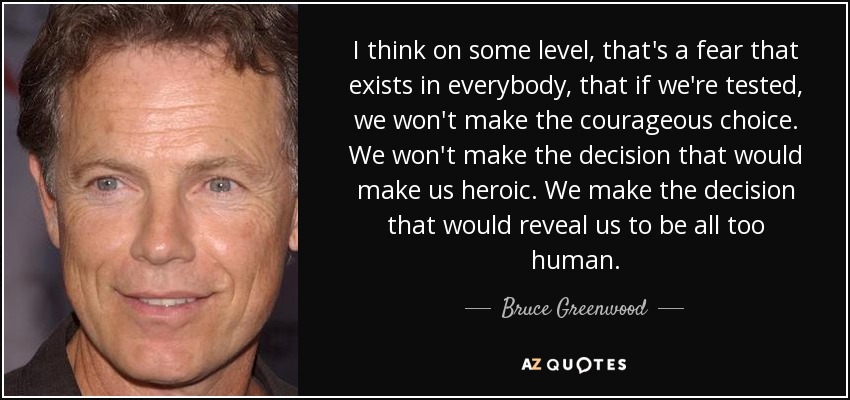 I think on some level, that's a fear that exists in everybody, that if we're tested, we won't make the courageous choice. We won't make the decision that would make us heroic. We make the decision that would reveal us to be all too human.