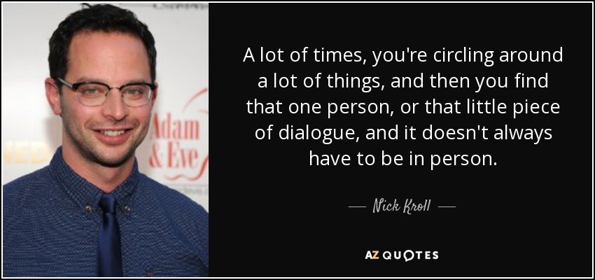 A lot of times, you're circling around a lot of things, and then you find that one person, or that little piece of dialogue, and it doesn't always have to be in person.
