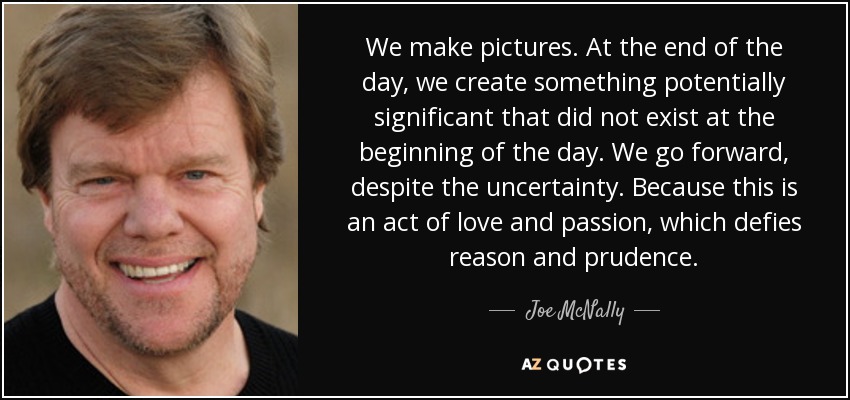 We make pictures. At the end of the day, we create something potentially significant that did not exist at the beginning of the day. We go forward, despite the uncertainty. Because this is an act of love and passion, which defies reason and prudence.