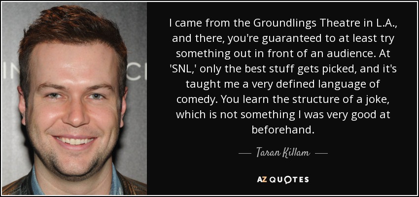 I came from the Groundlings Theatre in L.A., and there, you're guaranteed to at least try something out in front of an audience. At 'SNL,' only the best stuff gets picked, and it's taught me a very defined language of comedy. You learn the structure of a joke, which is not something I was very good at beforehand.