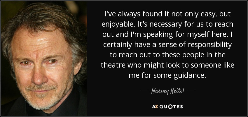 I've always found it not only easy, but enjoyable. It's necessary for us to reach out and I'm speaking for myself here. I certainly have a sense of responsibility to reach out to these people in the theatre who might look to someone like me for some guidance.