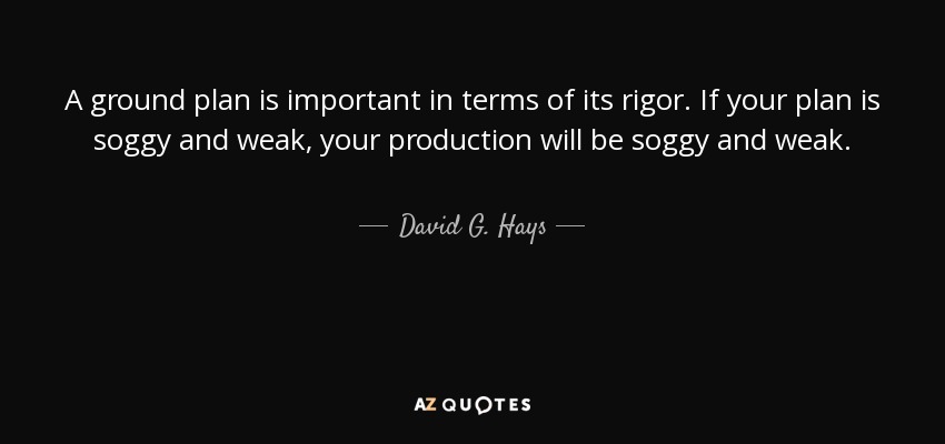 A ground plan is important in terms of its rigor. If your plan is soggy and weak, your production will be soggy and weak.