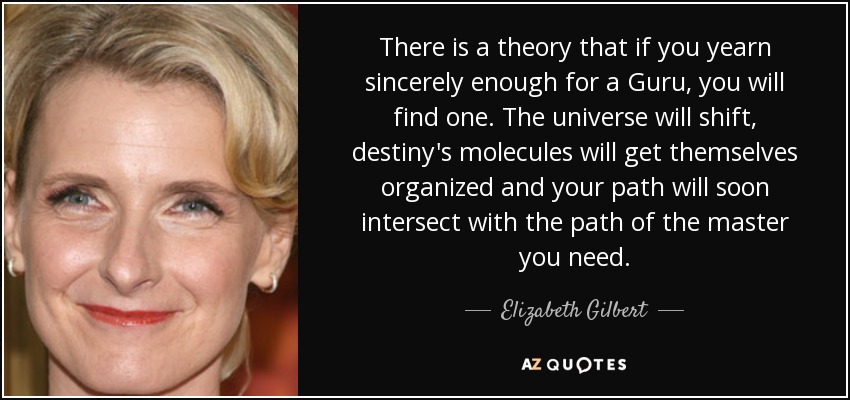 There is a theory that if you yearn sincerely enough for a Guru, you will find one. The universe will shift, destiny's molecules will get themselves organized and your path will soon intersect with the path of the master you need.
