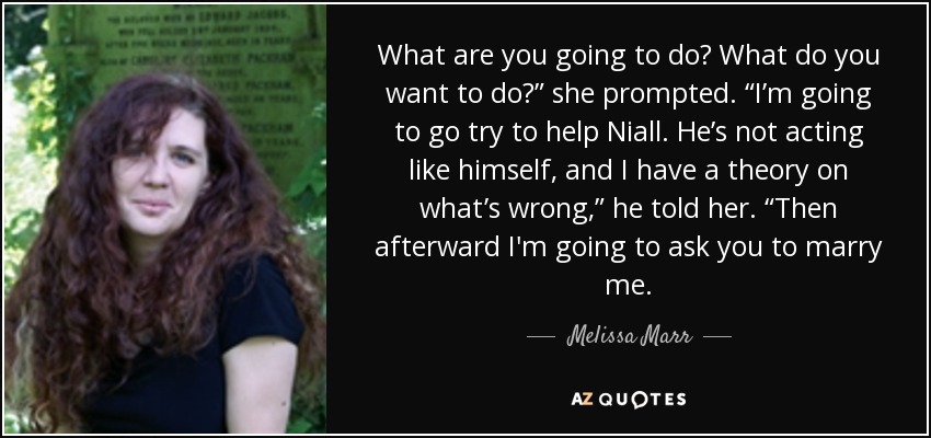 What are you going to do? What do you want to do?” she prompted. “I’m going to go try to help Niall. He’s not acting like himself, and I have a theory on what’s wrong,” he told her. “Then afterward I'm going to ask you to marry me.