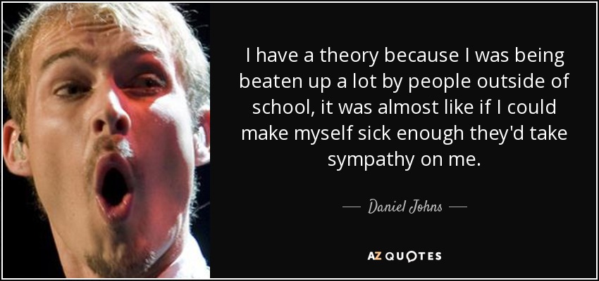 I have a theory because I was being beaten up a lot by people outside of school, it was almost like if I could make myself sick enough they'd take sympathy on me.