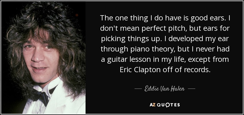The one thing I do have is good ears. I don't mean perfect pitch, but ears for picking things up. I developed my ear through piano theory, but I never had a guitar lesson in my life, except from Eric Clapton off of records.