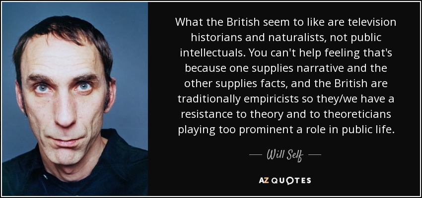 What the British seem to like are television historians and naturalists, not public intellectuals. You can't help feeling that's because one supplies narrative and the other supplies facts, and the British are traditionally empiricists so they/we have a resistance to theory and to theoreticians playing too prominent a role in public life.