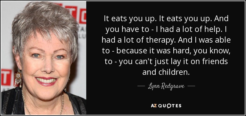 It eats you up. It eats you up. And you have to - I had a lot of help. I had a lot of therapy. And I was able to - because it was hard, you know, to - you can't just lay it on friends and children.