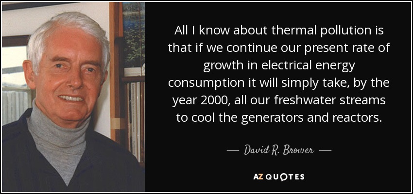 All I know about thermal pollution is that if we continue our present rate of growth in electrical energy consumption it will simply take, by the year 2000, all our freshwater streams to cool the generators and reactors.
