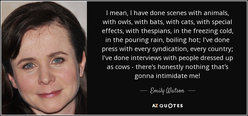 I mean, I have done scenes with animals, with owls, with bats, with cats, with special effects, with thespians, in the freezing cold, in the pouring rain, boiling hot; I've done press with every syndication, every country; I've done interviews with people dressed up as cows - there's honestly nothing that's gonna intimidate me!
