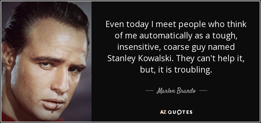 Even today I meet people who think of me automatically as a tough, insensitive, coarse guy named Stanley Kowalski. They can't help it, but, it is troubling.