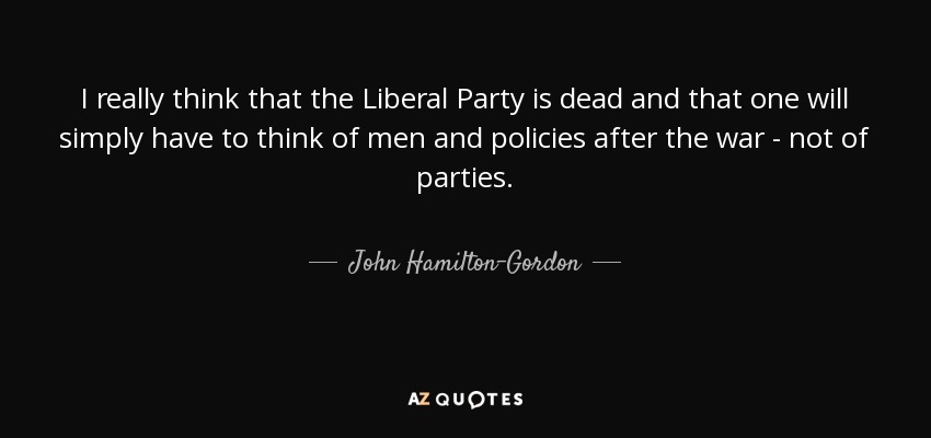 I really think that the Liberal Party is dead and that one will simply have to think of men and policies after the war - not of parties.