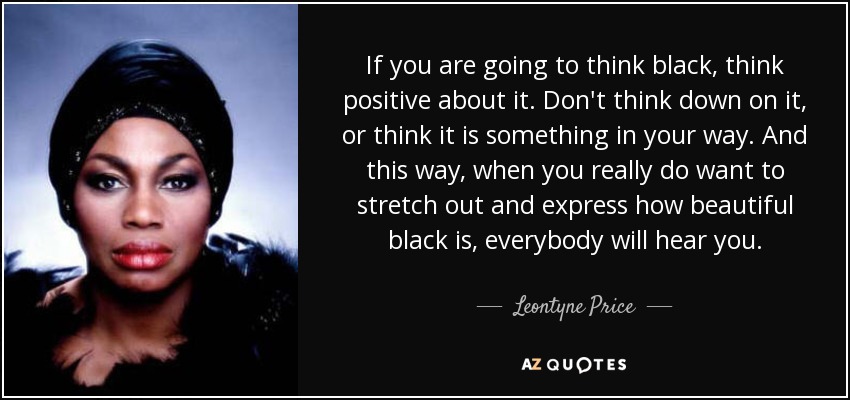If you are going to think black, think positive about it. Don't think down on it, or think it is something in your way. And this way, when you really do want to stretch out and express how beautiful black is, everybody will hear you.