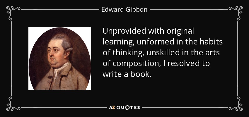 Unprovided with original learning, unformed in the habits of thinking, unskilled in the arts of composition, I resolved to write a book.