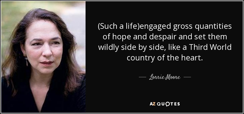(Such a life)engaged gross quantities of hope and despair and set them wildly side by side, like a Third World country of the heart.