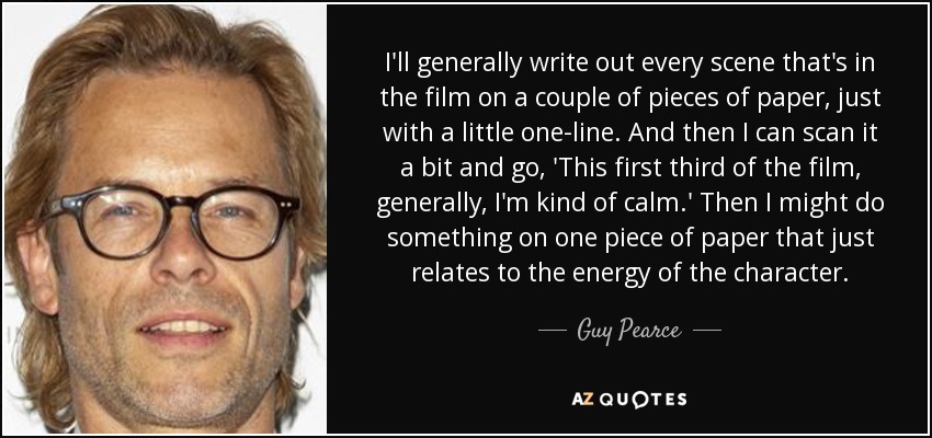 I'll generally write out every scene that's in the film on a couple of pieces of paper, just with a little one-line. And then I can scan it a bit and go, 'This first third of the film, generally, I'm kind of calm.' Then I might do something on one piece of paper that just relates to the energy of the character.