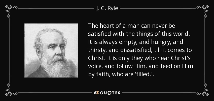 The heart of a man can never be satisfied with the things of this world. It is always empty, and hungry, and thirsty, and dissatisfied, till it comes to Christ. It is only they who hear Christ's voice, and follow Him, and feed on Him by faith, who are 'filled.'.