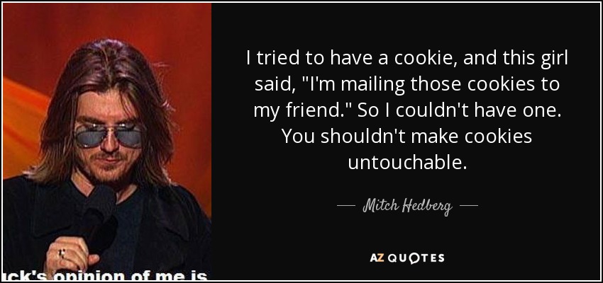 I tried to have a cookie, and this girl said, "I'm mailing those cookies to my friend." So I couldn't have one. You shouldn't make cookies untouchable.