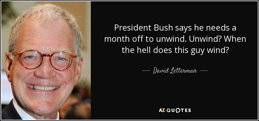 President Bush says he needs a month off to unwind. Unwind? When the hell does this guy wind?